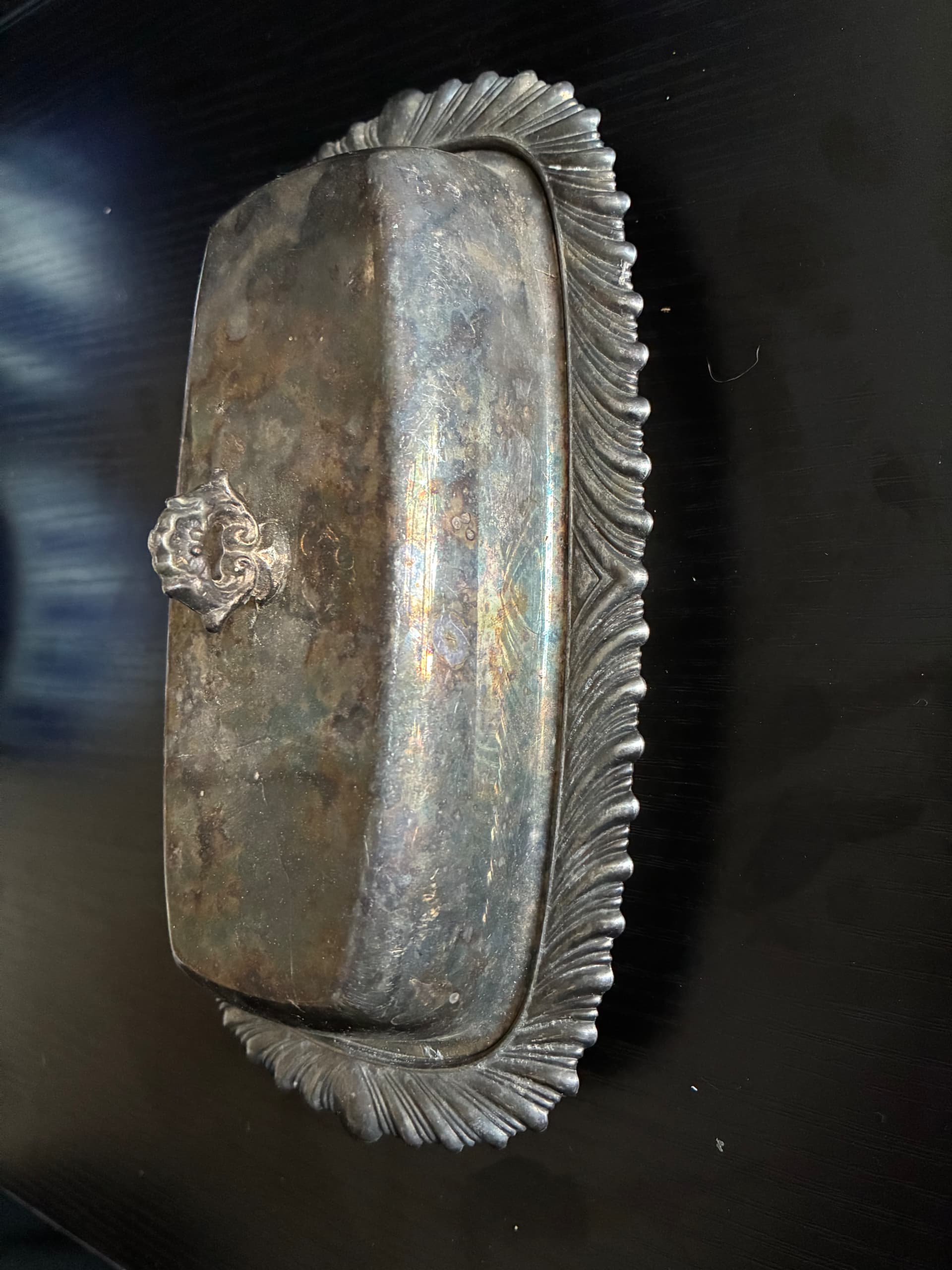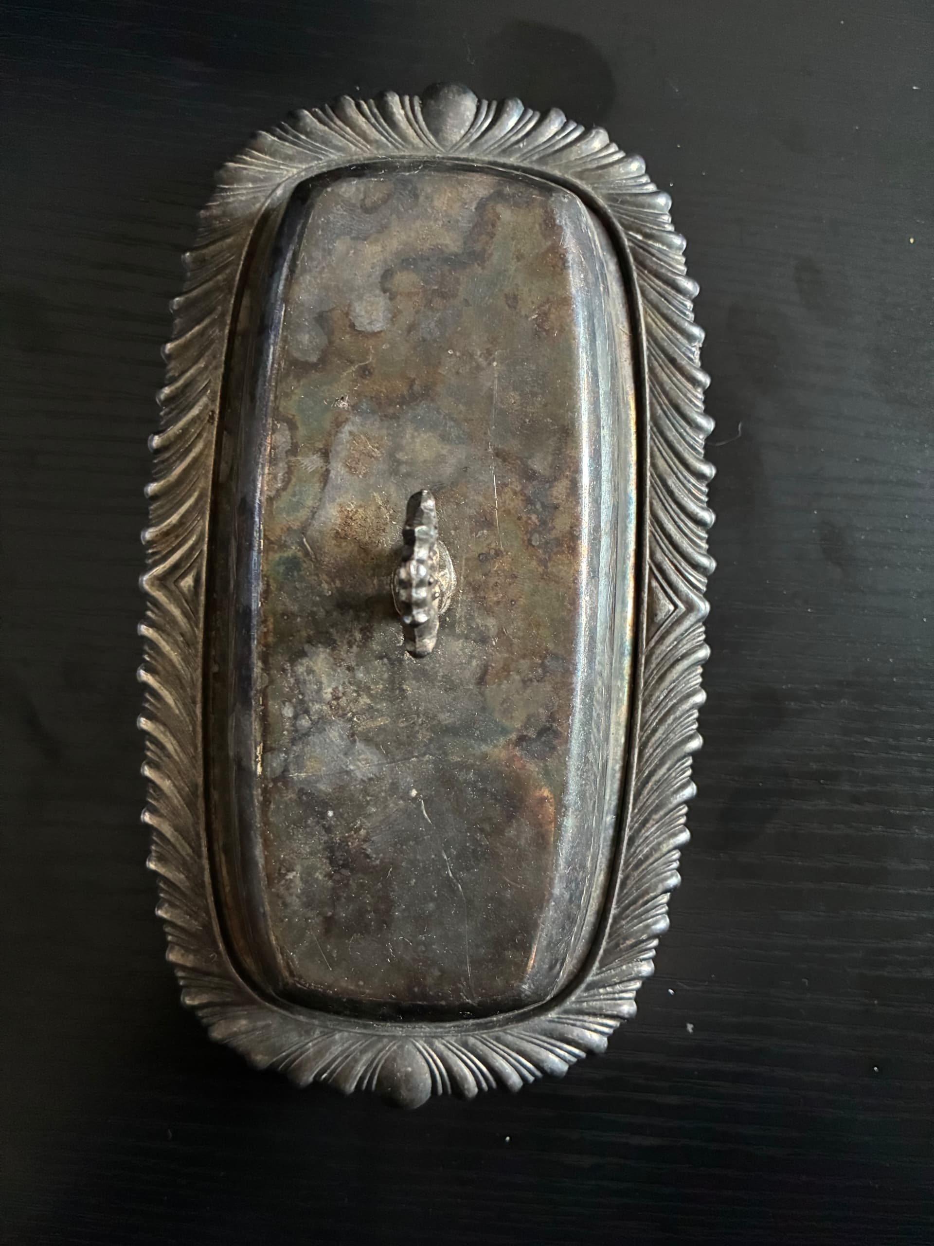 Excellent examp;e of a Henry Birks Regency Plate butter dish. It’s a very heavy plate and will look good on your Thanksgiving table.