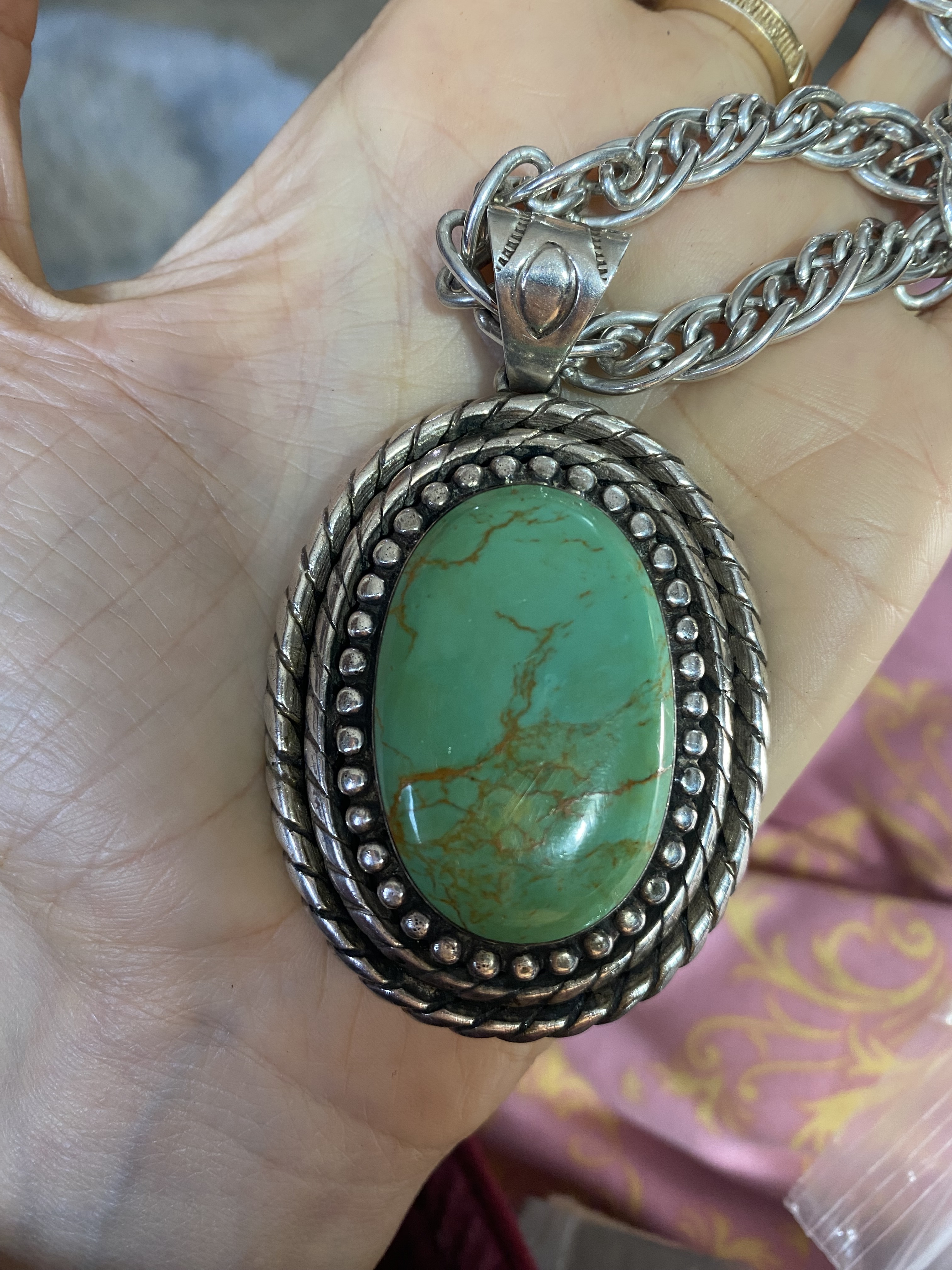 Hello. Can anyone help me work out who made this pendant and if it’s Native American. It’s sterling silver (tested) and turquoise (tested) and weighs about 50g.