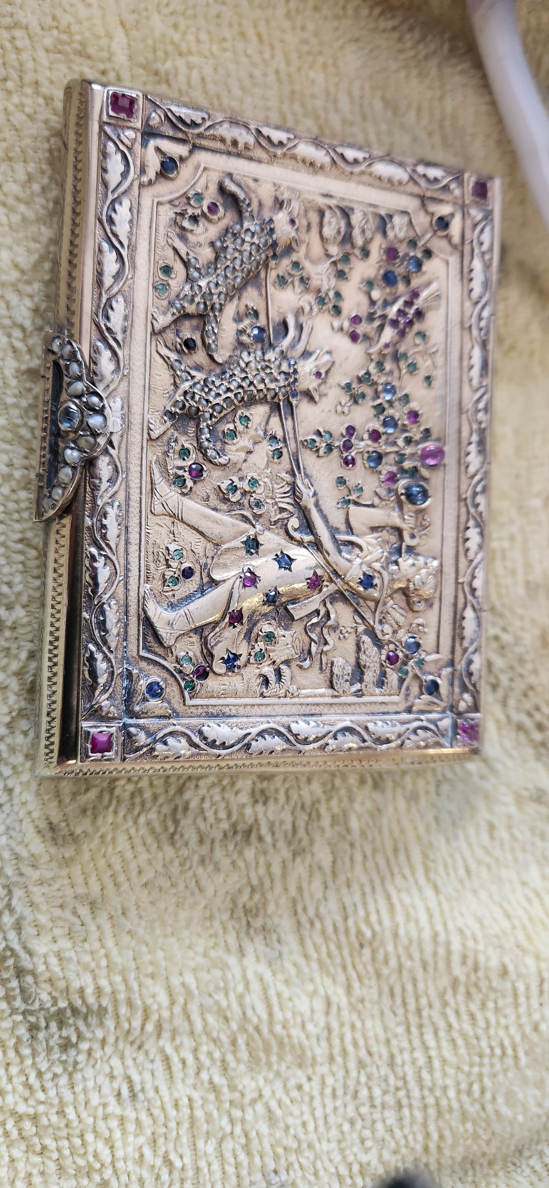 This is a 20th century cigarettes case and you will see a lot of similarly themed work sometimes with embossment and sometimes with filigree work on your next trip to Bali.Or your first if you have yet to visit.