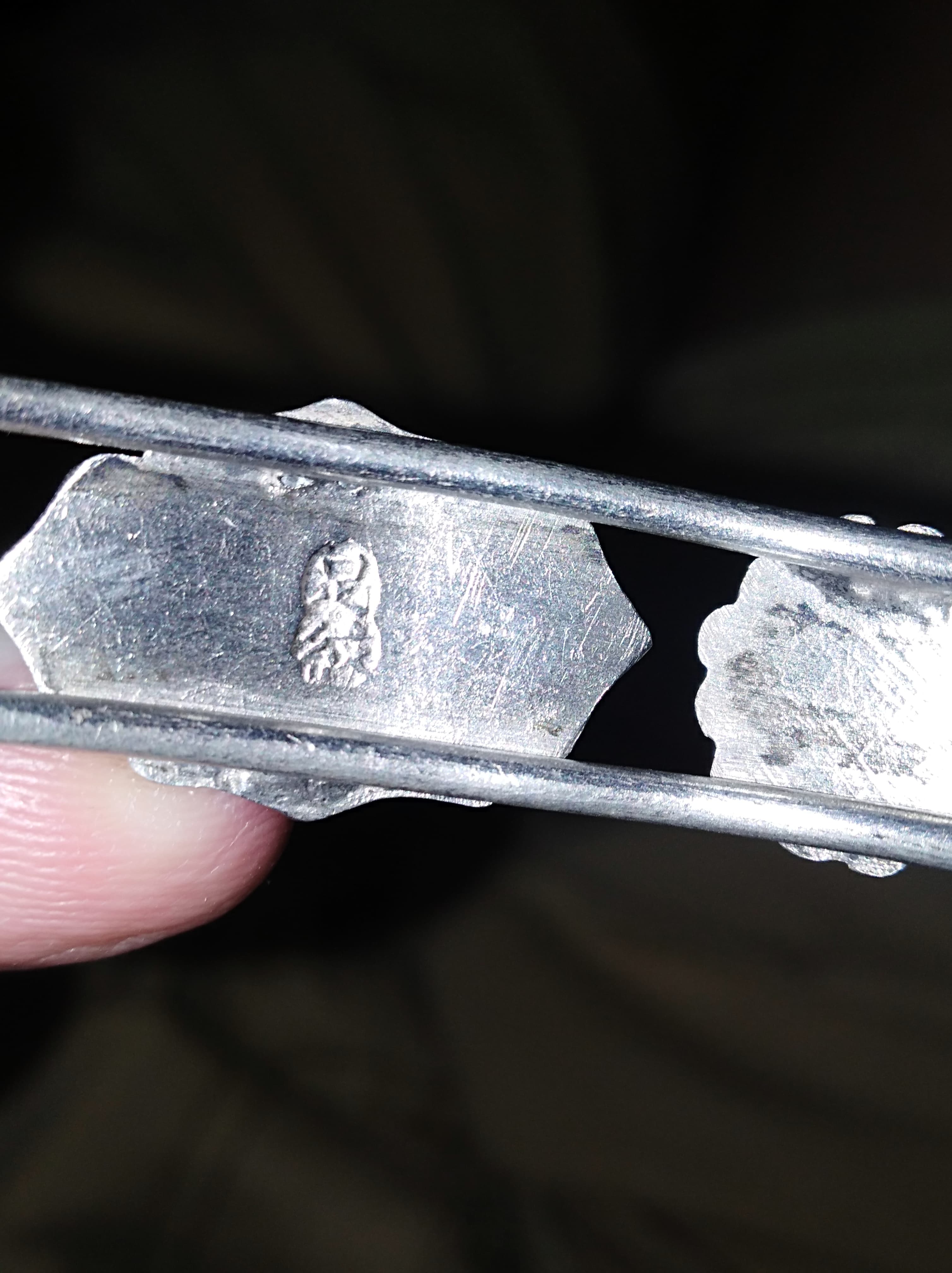 Hi Guys, another Op-Shop treasure. It’s an old bralet, but the tarnish was not like silver usually goes ? The top of the mark, looks like an odd shaped TV. And the bottom right, is a star, the rest I just can’t work out. Thanks everyone, B B.