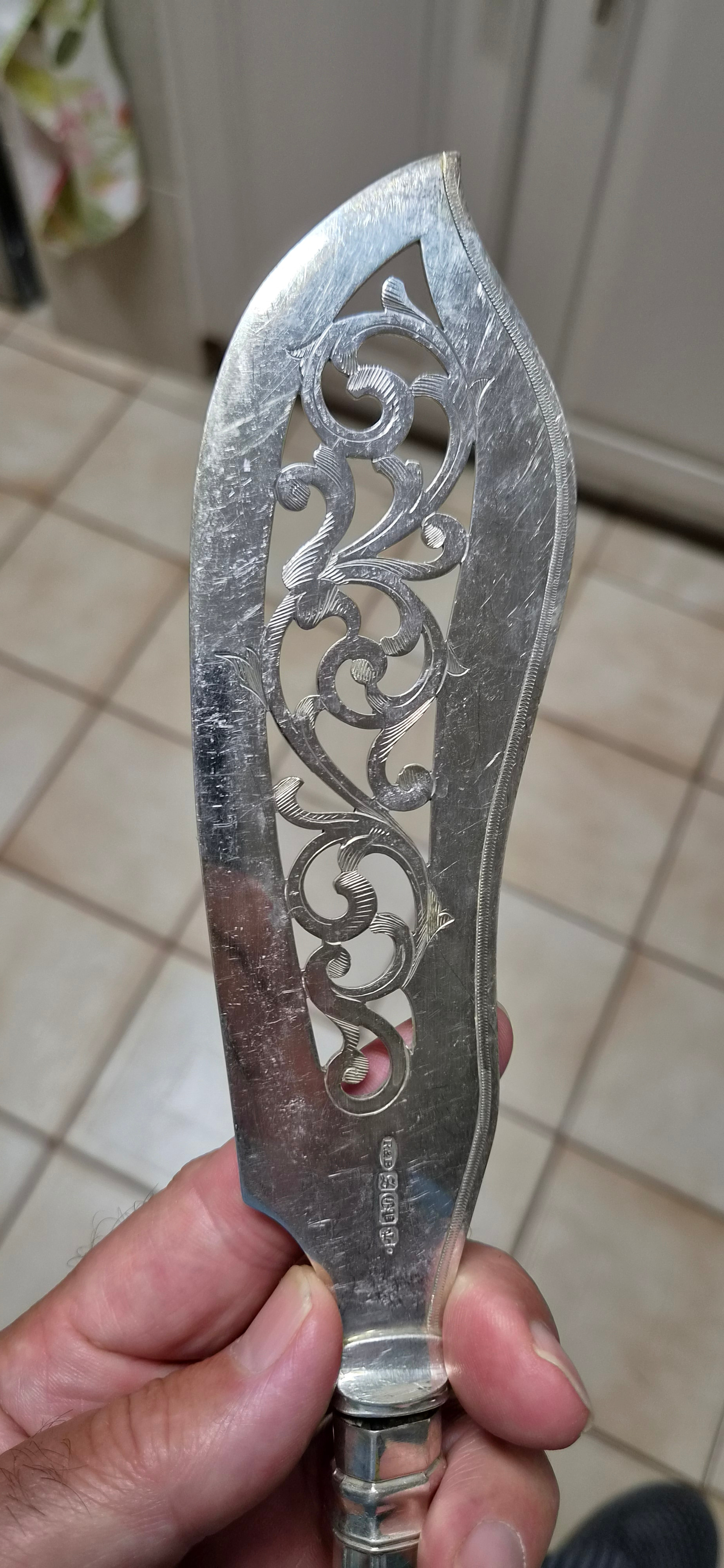 I bought this large knife many years ago. I don’t even know if it is for cake or for fish. And then I would like to know if it is silve