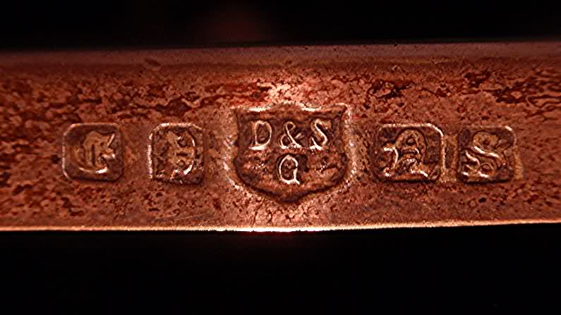 Your frame is electroplated rather than solid silver, so is more difficult to date accurately. The Old English letters are EPNS for electroplated nickel silver. The maker is Davis & Son of Glasgow and they were using this style of trademarking during (approximately) the first 20 years of the 20th century.