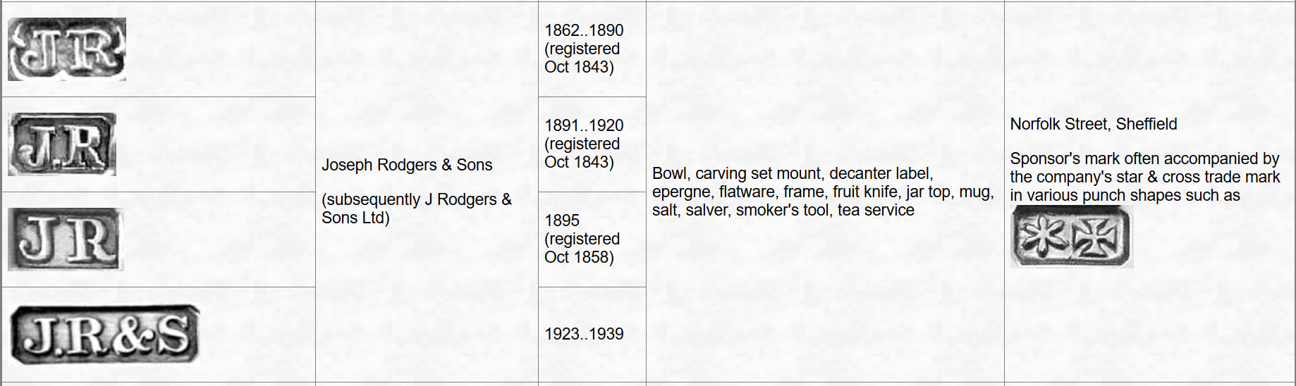 The mark on the front reads:Sheffield Makers Marks - JL-JR