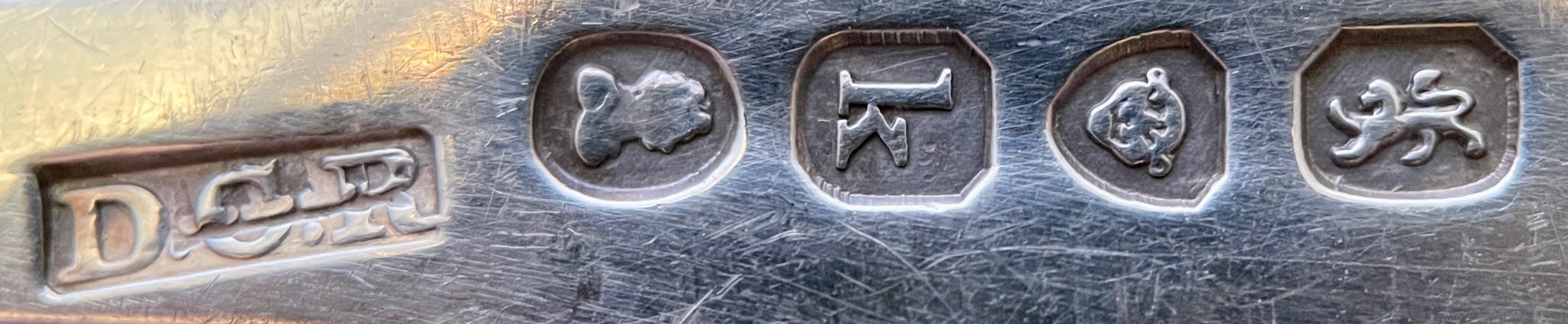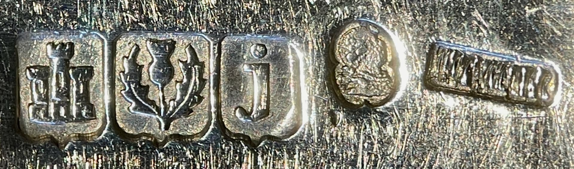 Many thanks Bart for your usual insight into these arcane questions. I’d like to think that the marks were for Marshall’s, but I can’t make out any sign of the curve of an “S” on the right side, unless the obliterator has been particularly zealous. The various reasons for obliteration are very interesting: I have a table fork hallmarked for London, but with the mark of David Crichton Rait, a Glasgow silversmith. On closer examination, it would appear that Rait overstamped the London sponsor’s mark with his own, maybe for resale under his own name in Scotland.