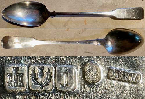 Here is a decent Scottish basting spoon marked for Edinburgh 1815, 30.8cm, 92g. But the sponsor’s mark seems to have been purposely obliterated. Any ideas why this should have been done? If it were under standard, surely the hallmarks would have been obliterated, not the sponsor’s mark…