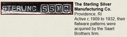 I found no example of this specific piece in my Internet search. It’s marked “sterling ssmc”. The mfg (Sterling Silver Manufacturing Company) is said to be from Providence RI, USA. Cira 1909 to 1932.