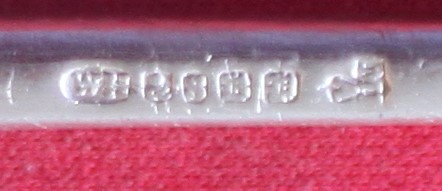 An electroplate mark of William Hutton & Sons of Sheffield. After the [WH] [&] [S] you have the Gothic or Old English letters B and P for Britannia Plate and then MP over A. I have to confess that I don’t know what the latter stand for. For further information see English electroplate silver: marks and hallmarks of British silver plate: Hi-Hz.