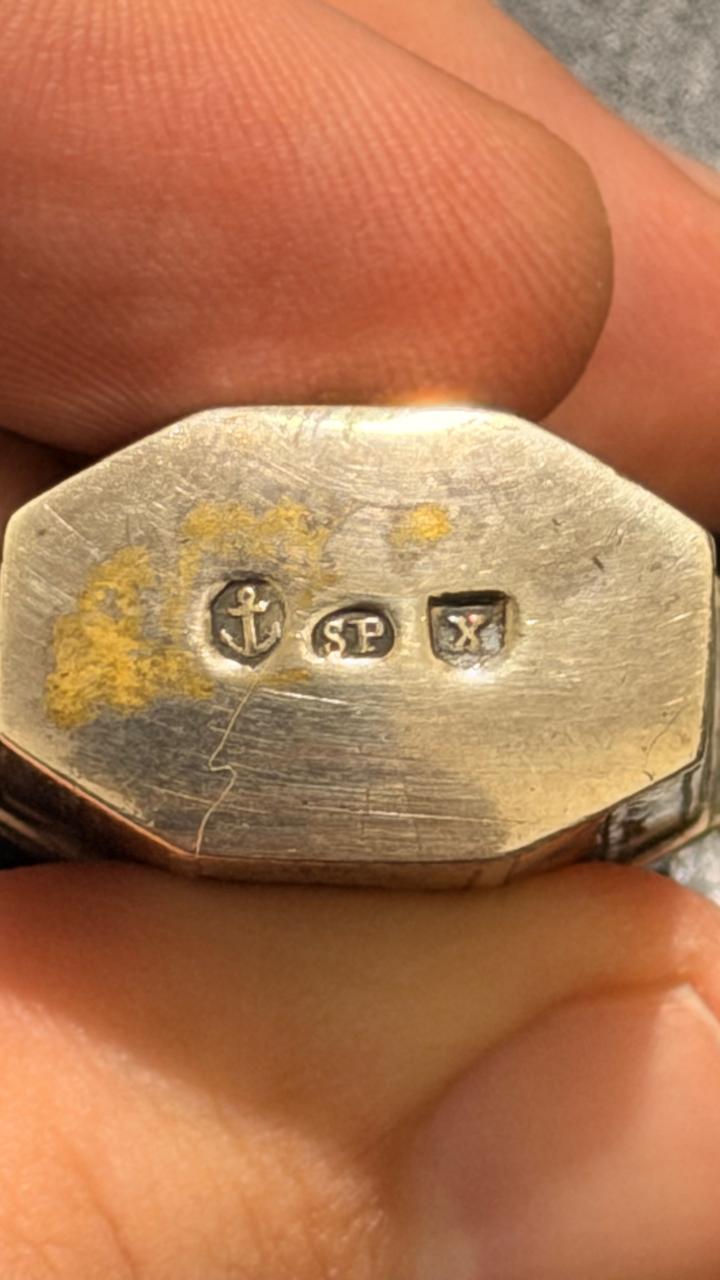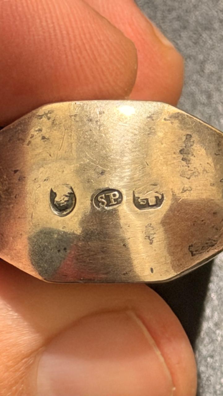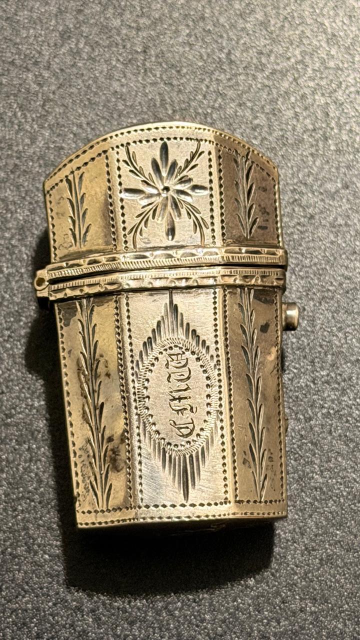 I bought this box of matches online without checking the markings; according to the seller, it was French. When it arrived, I had a big surprise: it’s English, and the year is either 1795 or 1821. If we look at the silvering, the year would be 1795, but if we look at the “x,” I think it’s closer to 1821, considering the distance above the “x,” which was the only relevant difference I found in the hallmarks between the two years.