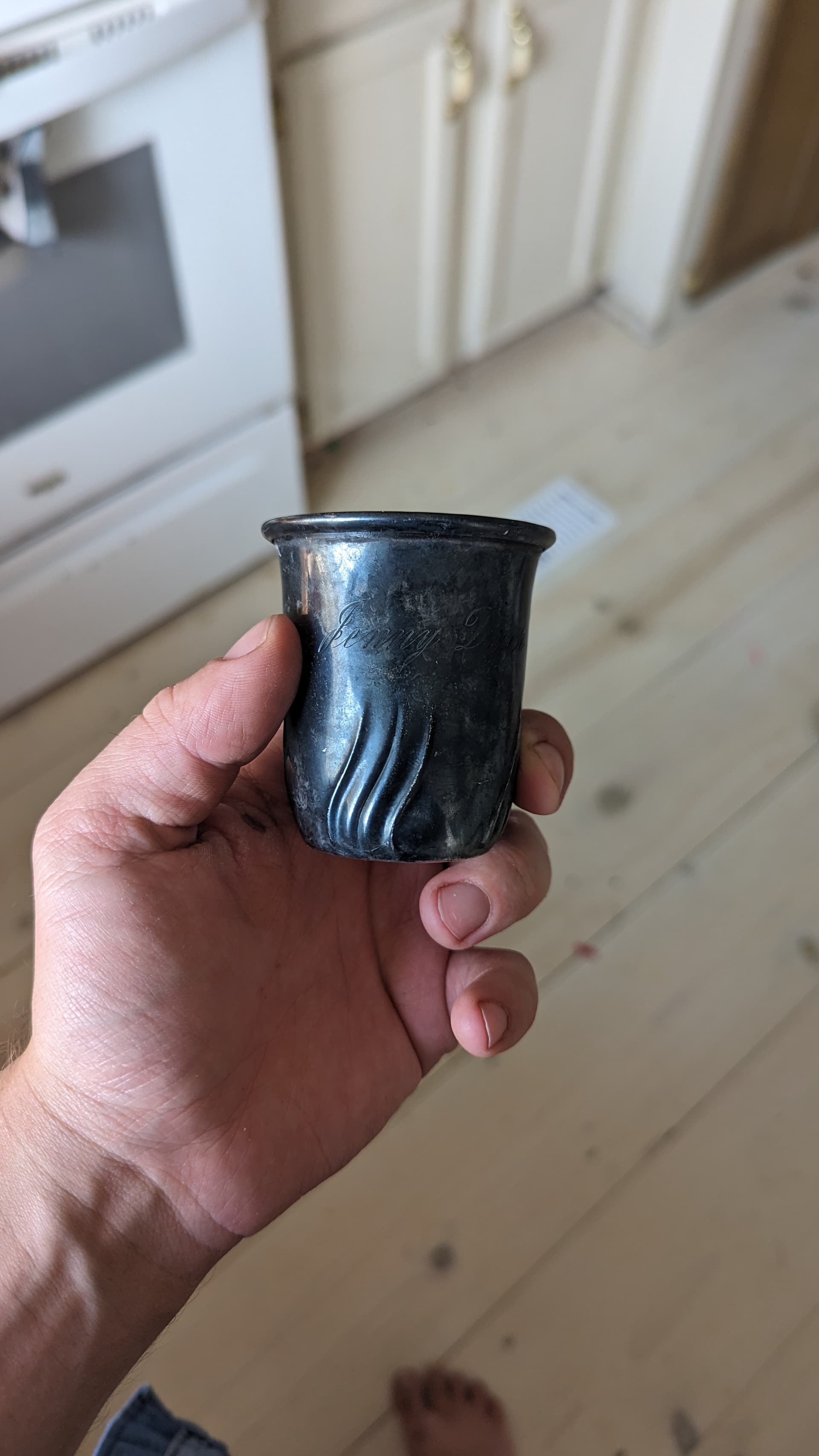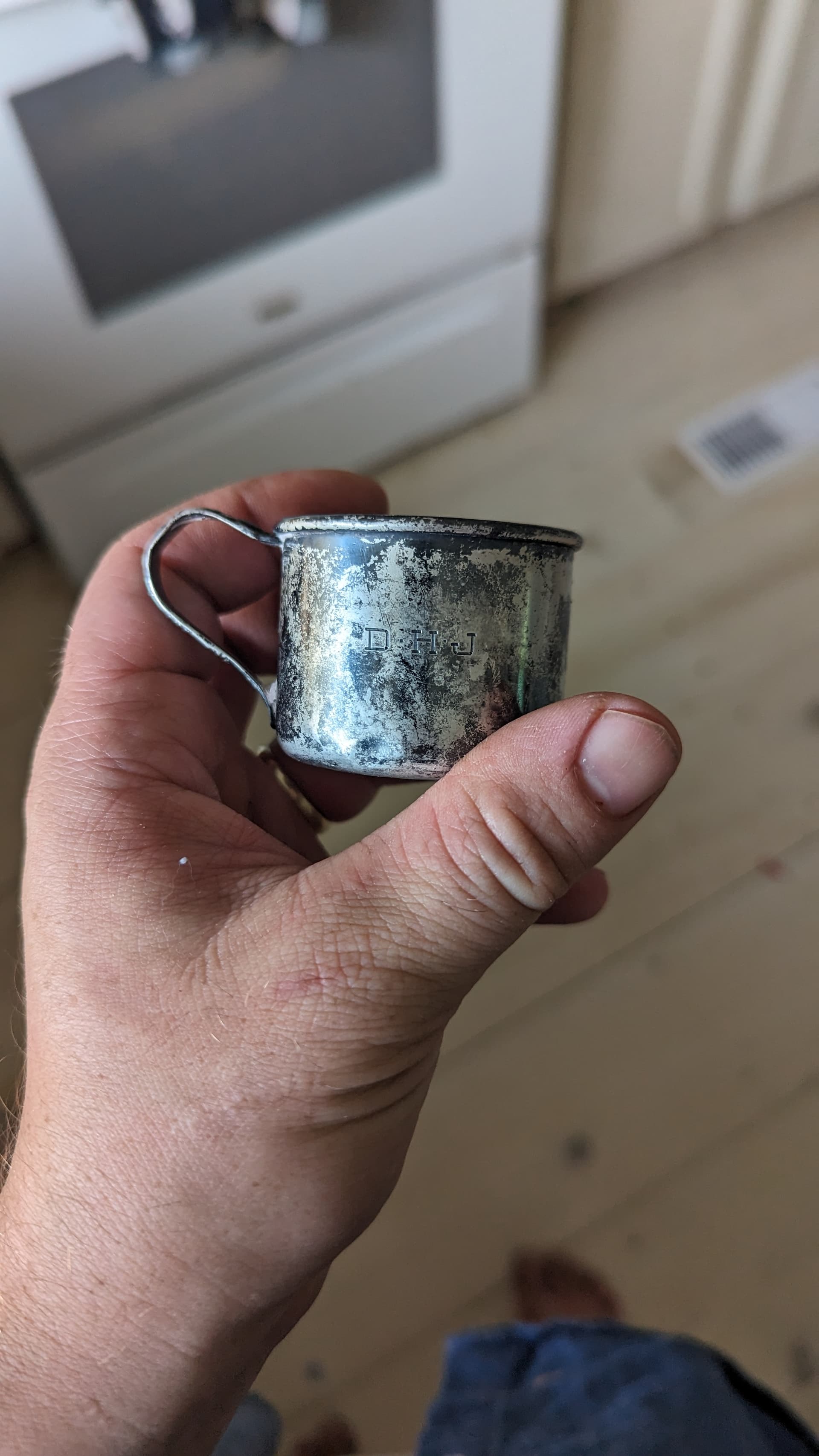 I bought two silver baby cups at the thrift store today.