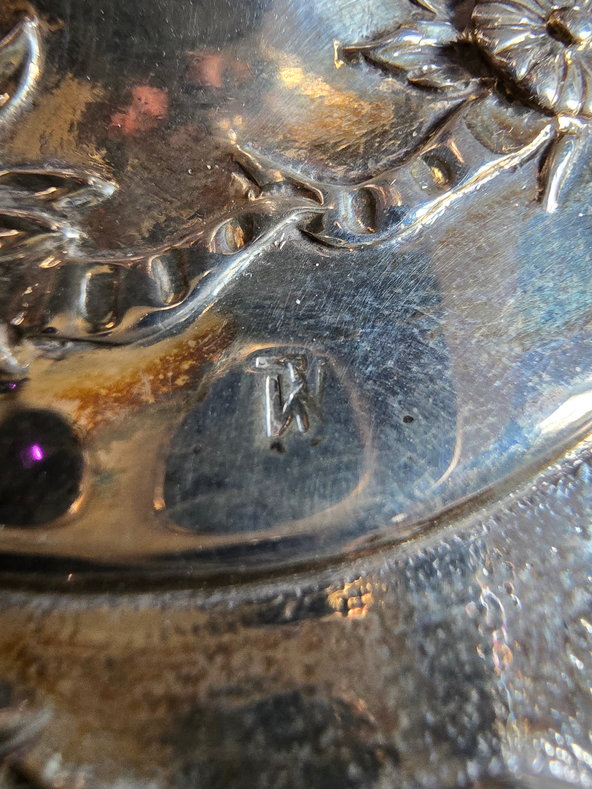 I’ve been left this 2 silver (I think silver) goblets and cannot find any marks identifying opriginal, silver level, country of origin or anything similar online. All I can find is this one very tiny stamp and I’ve trolled through American, World Marks and UK marks and cannot see anything resembling it.