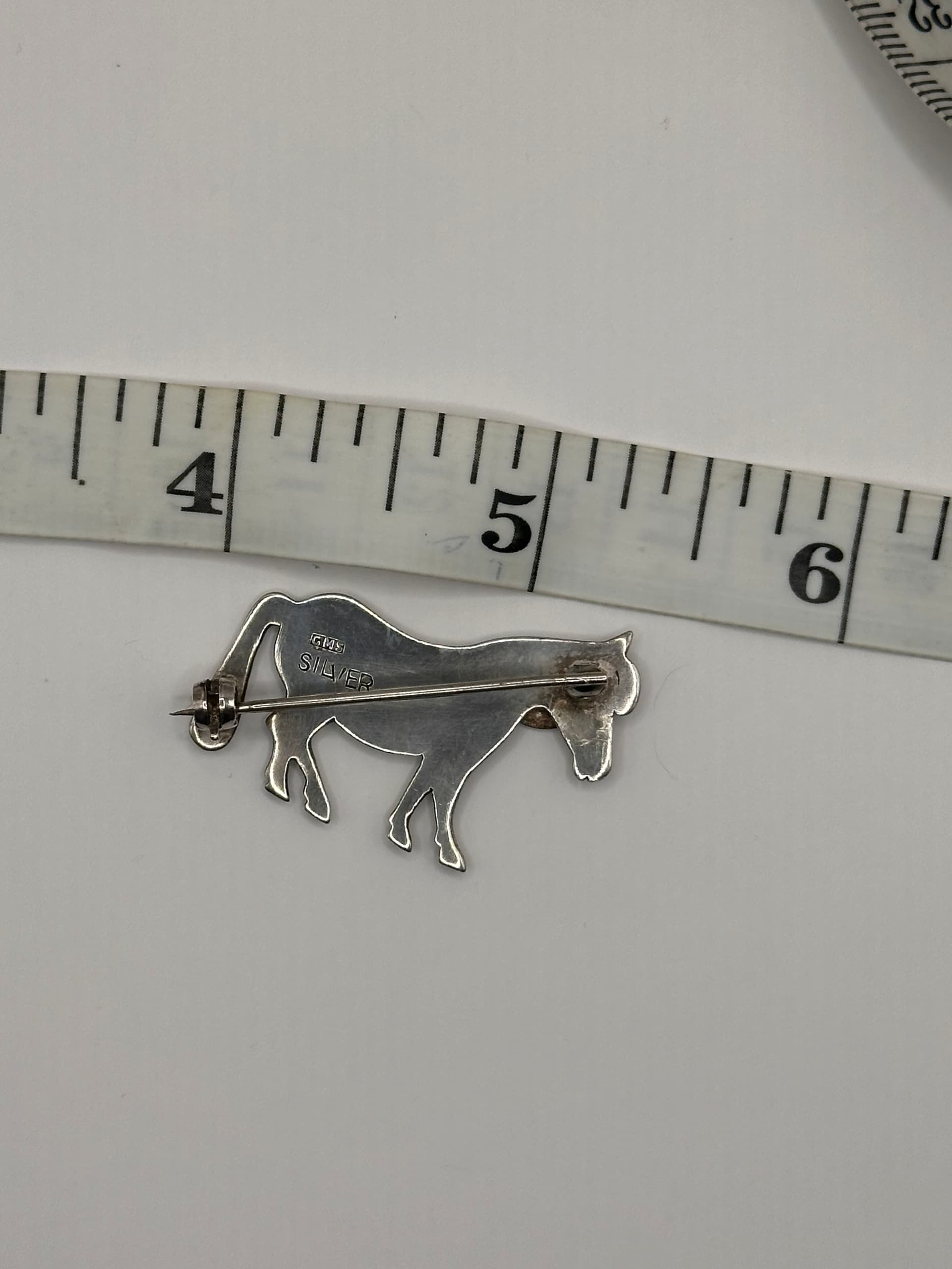 Hey there guys, I have this in my possession, it seems to be an Ola Gorie Brooch but is marked GMS SILVER when I was having a read about the GMS hallmark I found a man by the name of George Malcom Smith used unmarked Ola Gorie pieces, I’m having real trouble finding any of his other work, has anyone come across anything of his before as I’m looking to sell but find a price is difficult, at the moment it is on eBay, I’ve put it on an auction hoping to let others decide it’s worth, very cool piece