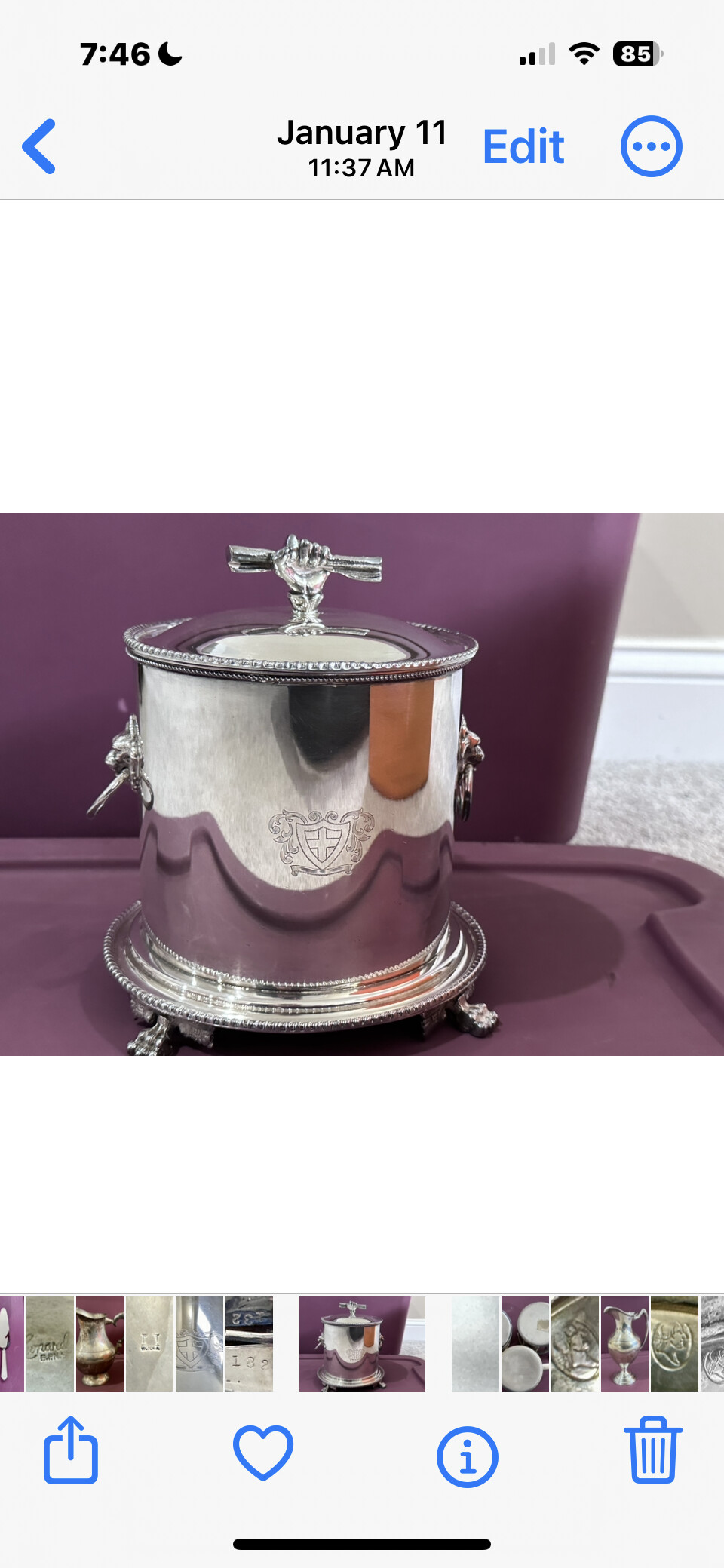 Hi. I’ve searched & searched for this Victoria with 2 columns hallmark to no avail. It’s on a silver plate(?) biscuit barrel I inherited.