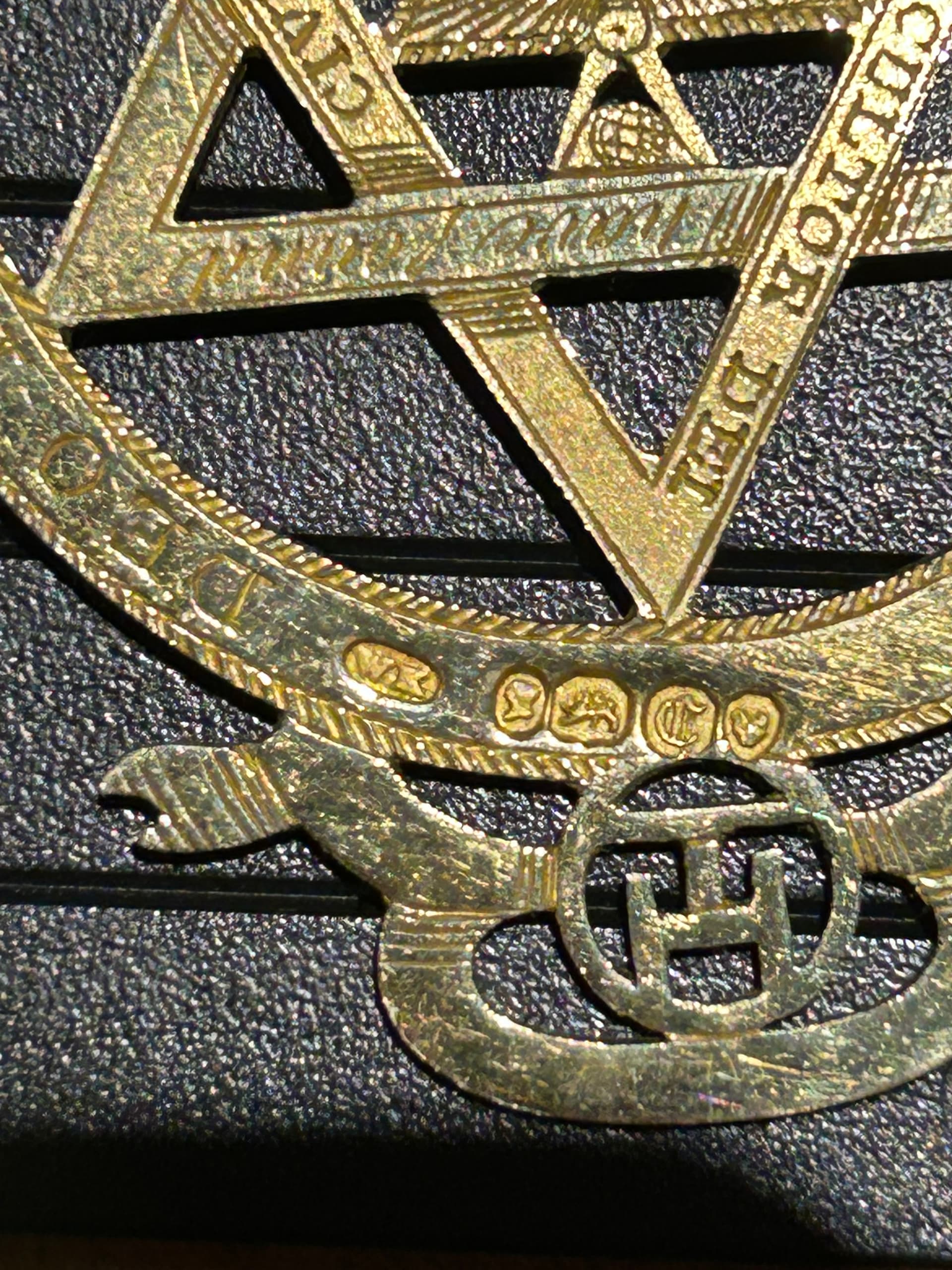 I was wondering if anyone had a name for this makers mark. It is a friends Masonic jewel and, unfortunately, these are the only pictures I have.