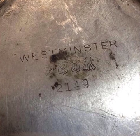 This is a trademark of the Forbes Silver Co. If these are the only marks then it is electroplated, not silver. Westminster is probably the name of the range/pattern and the number will be some sort of factory identification number for pattern/piece.