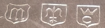 Hi, I can’t figure this mark out. It looks like a M M C with a crown over the C. The M’s are different in font. Someone said it was M M & CO, but I can’t find anything out about them and I can’t find anything about their hallmarks. The mark is on the bottom of a teapot, sugar & creamer. I imagine it is silver plate, but I don’t really know. It says nothing else other than the MMC. Thanks ahead of time for your help. I should mention that each letter is in its own shield. The picture is dark and hard to see. I found this picture online from another forum. I promise to post my own picture soon.