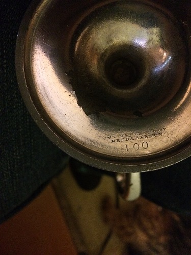 There is nothing on the bottom except for the words reed & Barton & the # 100.