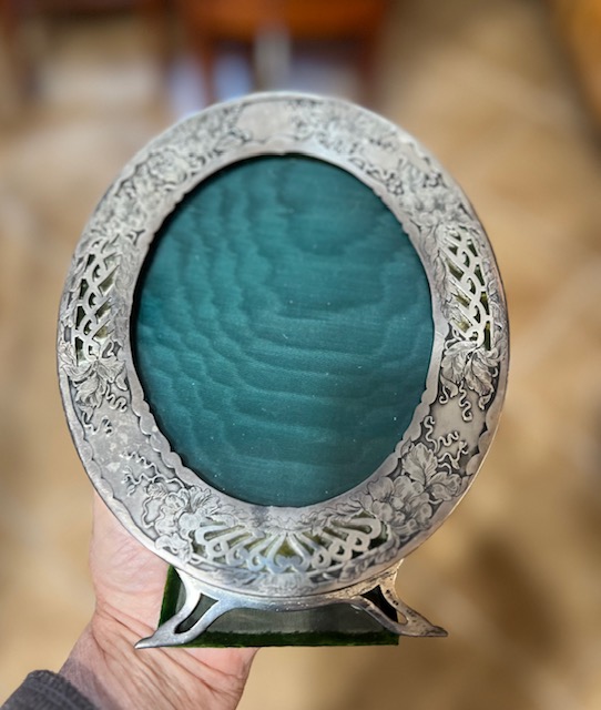 This is a wonderful antique sterling photo frame with a beautiful green felt back. I just can’t figure out the silver mark. Looking for assistance